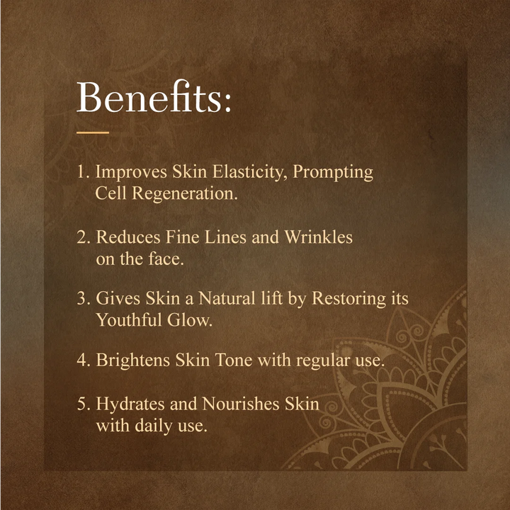 - Gives Skin a Natural lift by Restoring its Youthful Glow.