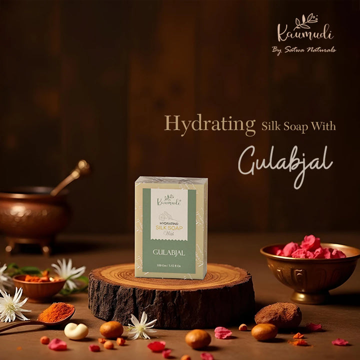 Hydrate and moisturize your skin deeply but gently to help your skin retain its natural texture. Recreate a spa like experience at home with our Hydrating Silk Soap with Gulabjal.