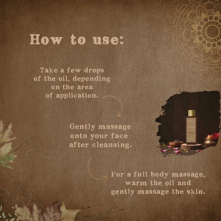 The biggest benefit of using this ayurvedic oil regularly is that it restores moisture, reduces flakiness, and extreme dryness. In addition to improving skin texture, this product gives your skin a healthy, natural glow. The skin's protective layer is revitalized while moisture is retained with regular use of our Lakshadi Thailam oil.