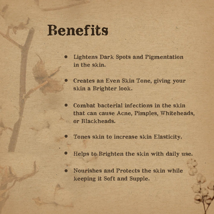 - Lightens Dark Spots and Pigmentation in the skin.